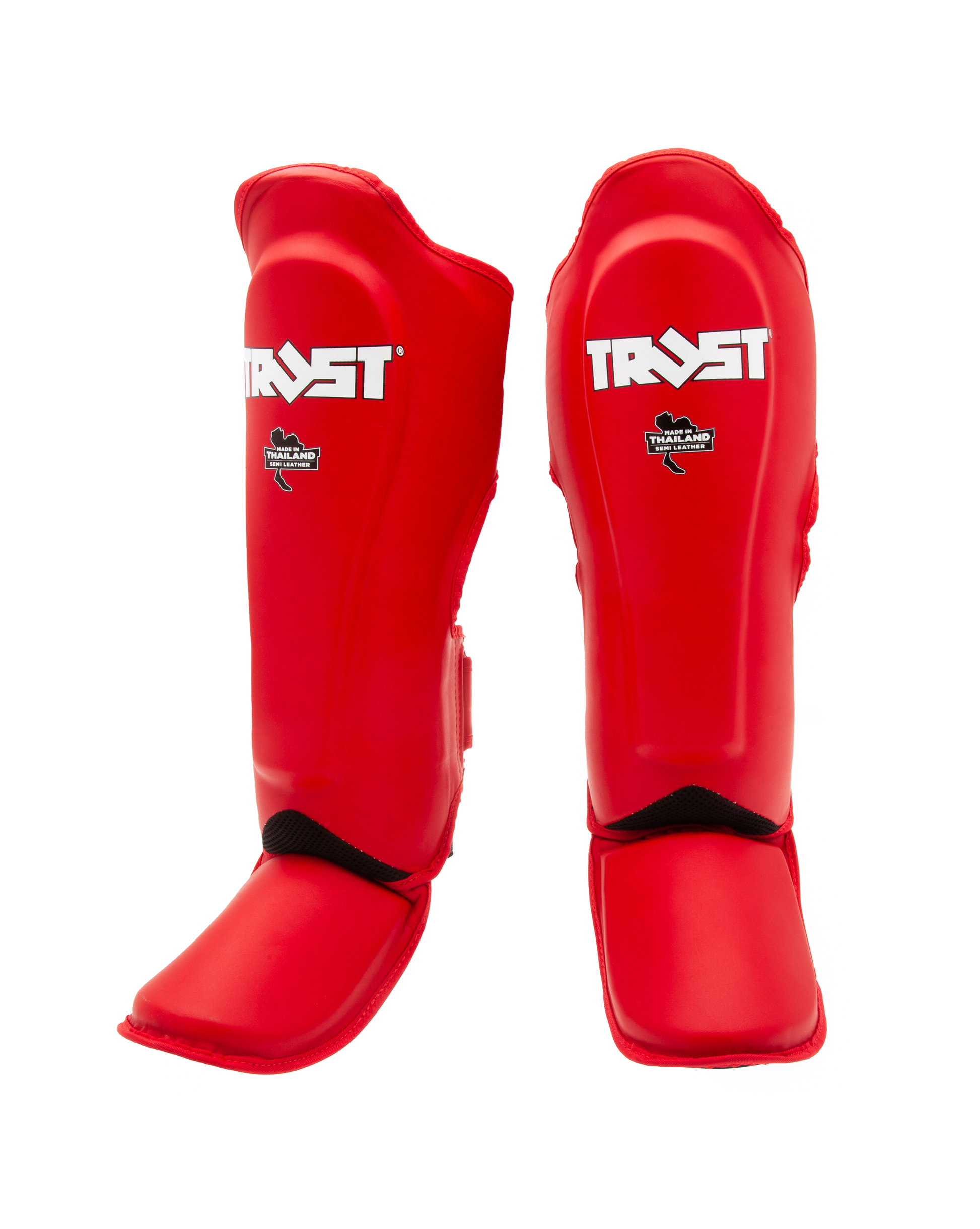 Trust Fight high quality SemiLeather Shin Guards. Light and resistent, handmade in Thailand. Double velcro adjustable closure.