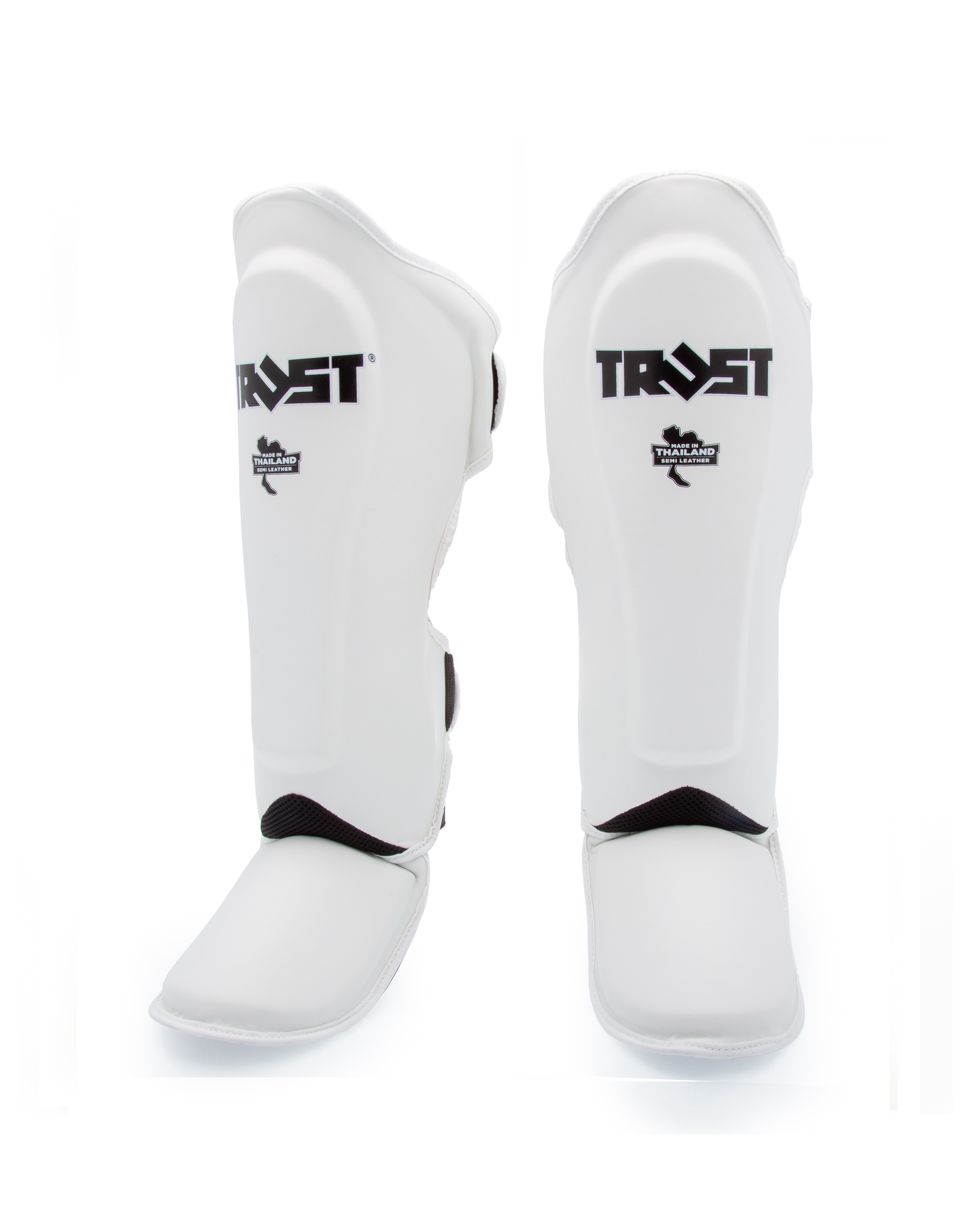 Trust Fight high quality SemiLeather Shin Guards. Light and resistent, handmade in Thailand. Double velcro adjustable closure.